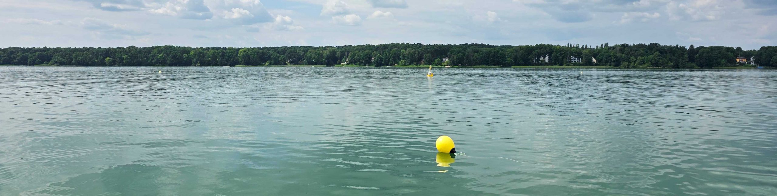 Segler und Wassersportler sollten künftig genau hinschauen, denn obwohl man die große gelbe Boje schon von weitem erkennt, sind wir dieses Hindernis im Scharmützelsee bislang noch nicht gewöhnt.
