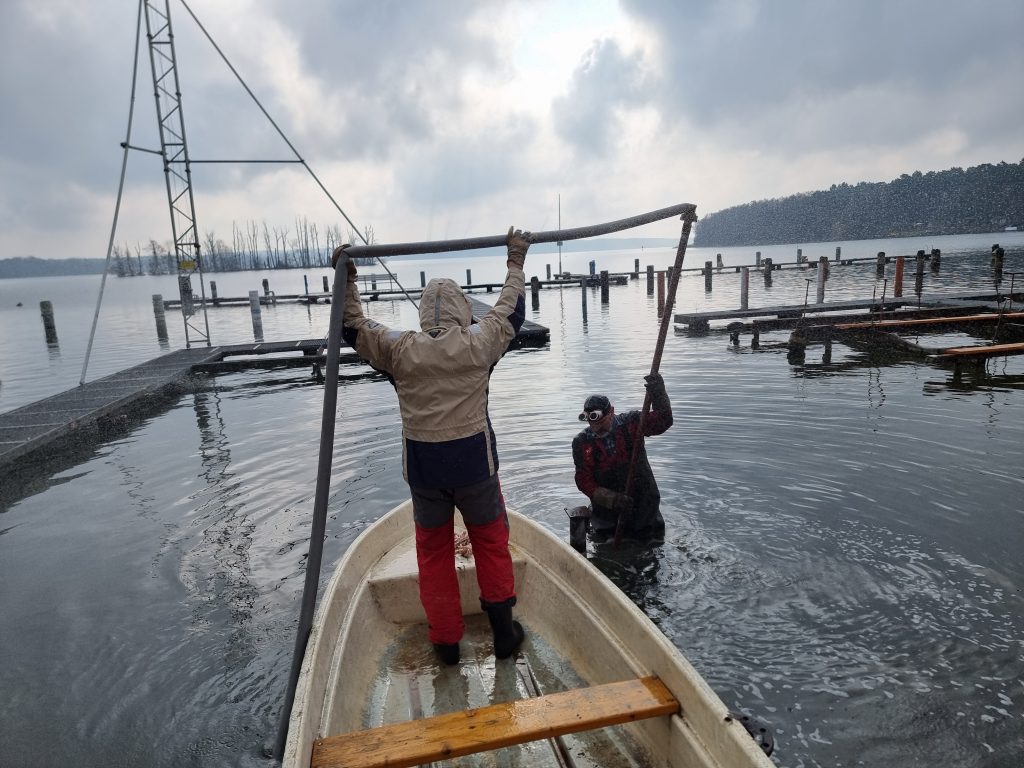 Am Ende des Tages schwimmt nun unsere neue Motorbootplattform mit Platz und Auffahrrampen für drei Schlauchboote im Innenhafen.